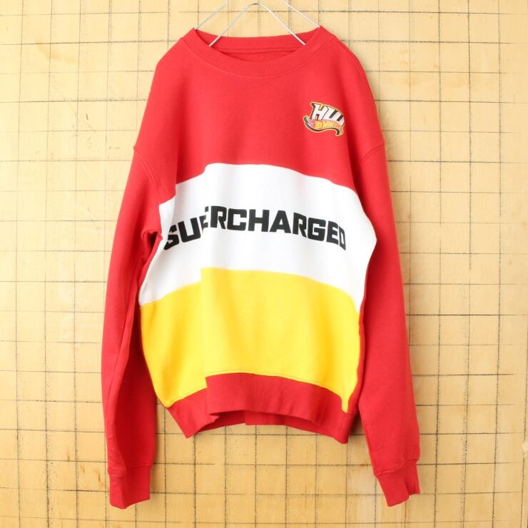USA Hot Wheels ホットウィール プリント スウェット レッド イエロー メンズS アメリカ古着です。