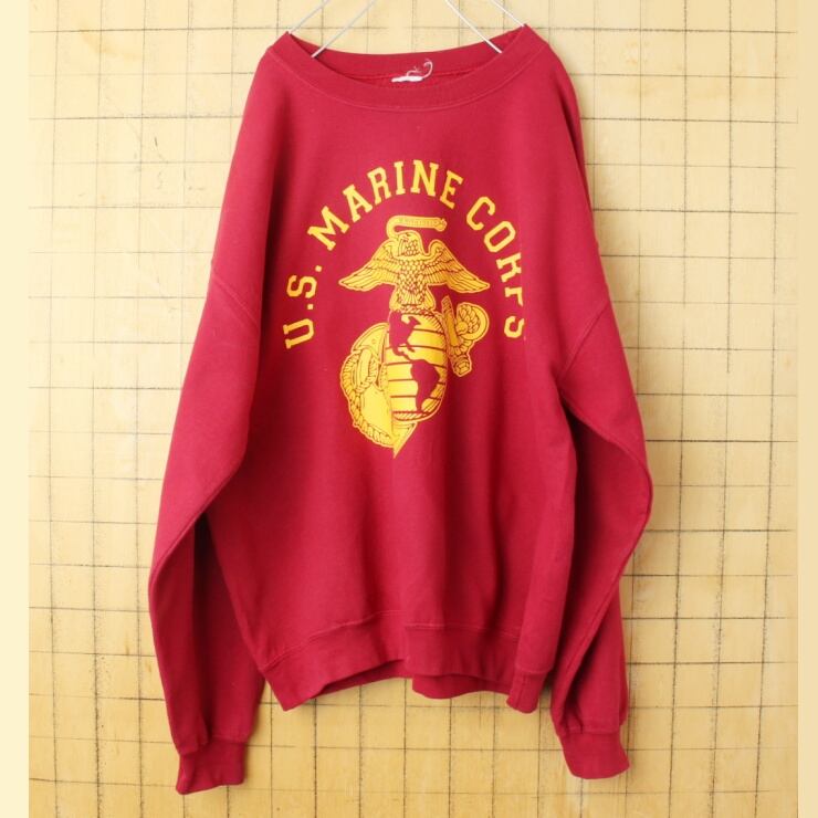 USA U.S.MARINE CORPS プリント スウェット ボルドー レッド メンズXL相当 アメリカ古着です。