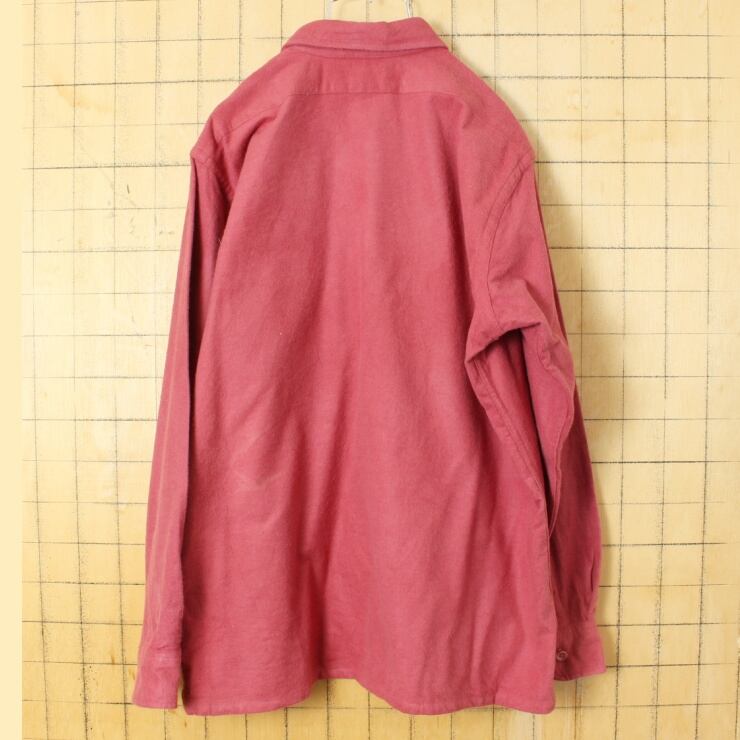 70s 80s USA製 LLBean シャモアクロス コットン シャツ ピンク レディースXL相当 メンズL相当 長袖 アメリカ古着 013124ss37
