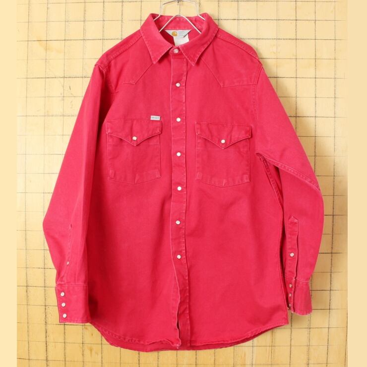 USA carhartt カーハート コットン ウエスタン シャツ レッド メンズXL相当 長袖 アメリカ古着 013124ss61