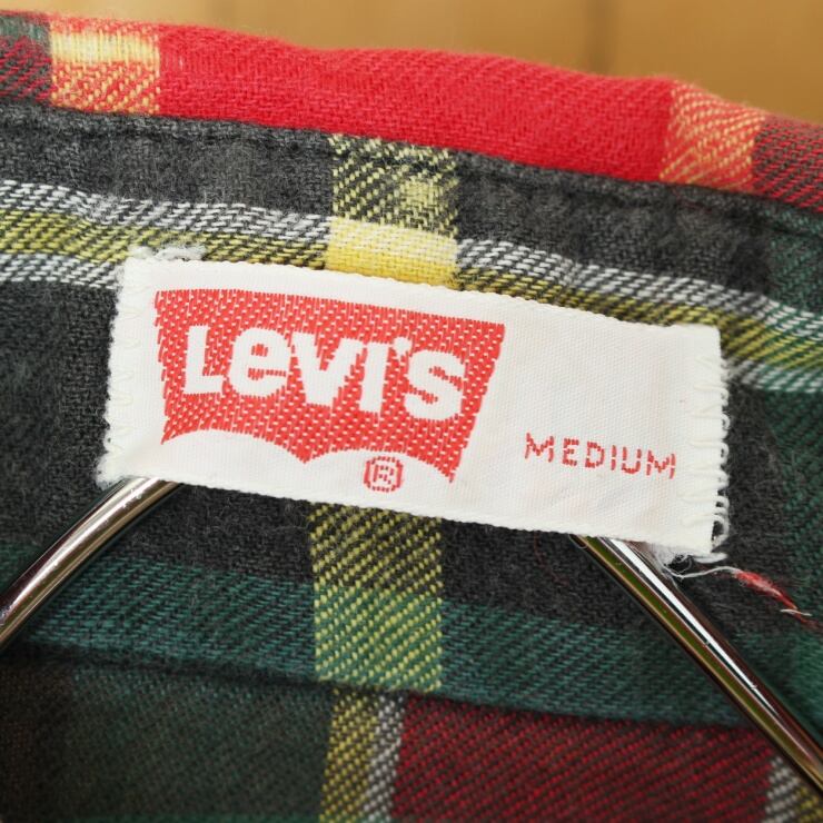 70s USA製 Levis リーバイス BIG-E フランネル チェック シャツ レッド グリーン メンズM 長袖 アメリカ古着です。