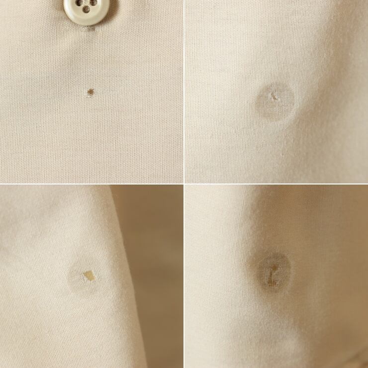 ボディ、袖にほつれ、シミ、リペア跡があります。