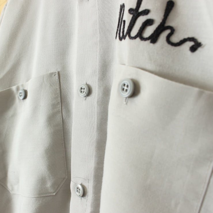 70s 80s USA製 RED KAP レッドキャップ Mitch チェーンステッチ ワーク シャツ グレー メンズL 半袖 アメリカ古着です。