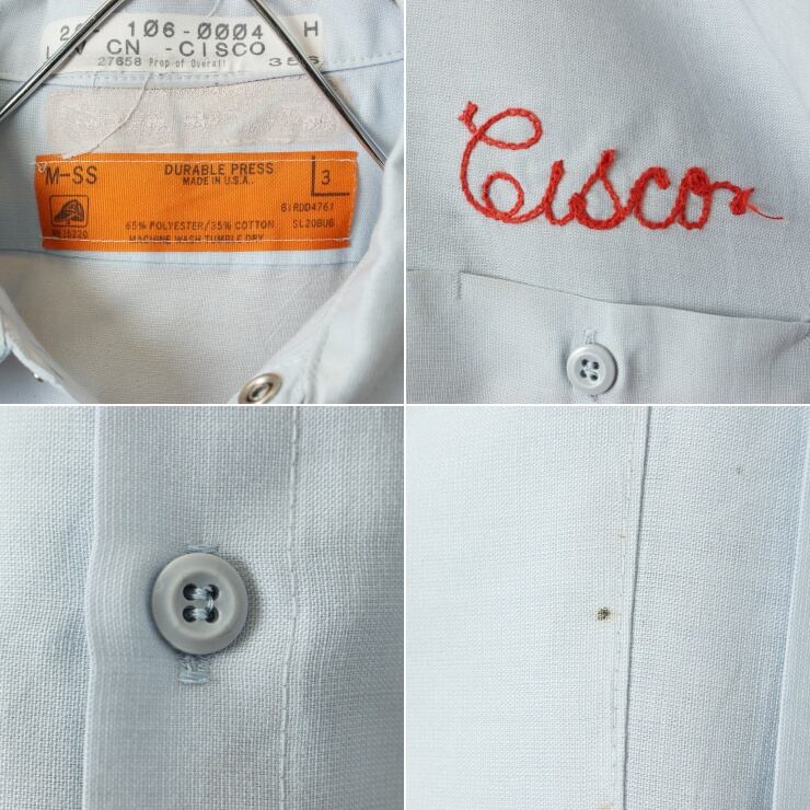 70s 80s USA製 RED KAP レッドキャップ Ciscor チェーンステッチ ワーク シャツ ライトブルー メンズM 半袖 アメリカ古着です。