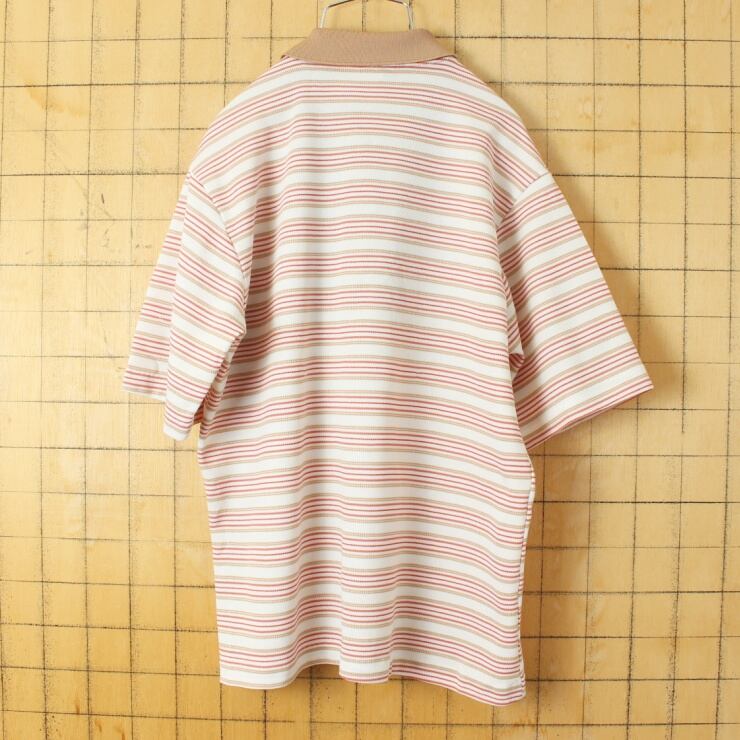 70s 80s USA Edwards OF CALIFORNIA ボーダー ポロシャツ メンズM相当 レッド 半袖 ポリエステル アメリカ古着 050824ss106
