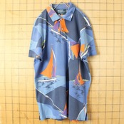USA Polo RALPH LAUREN ポロ ラルフローレン 半袖 ヨット 総柄 ポロシャツ ネイビー ブルー メンズM アメリカ古着です。