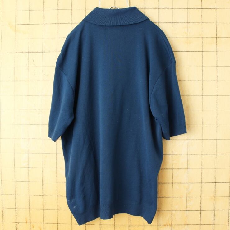 60s 70s USA製 FAIRMONT Ban-Lon バンロン ポロシャツ メンズXL ネイビー ブルー 半袖 ナイロン アメリカ古着 050824ss115