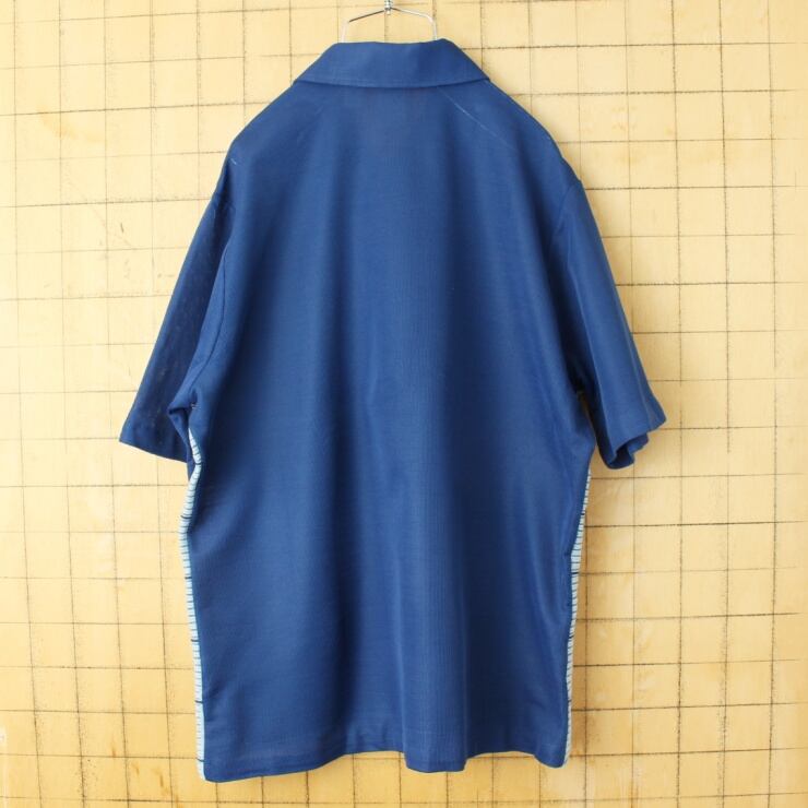 70s 80s USA SPIRE california ポリニット ポロシャツ メンズXL ネイビー ブルー 半袖 アメリカ古着 050824ss133