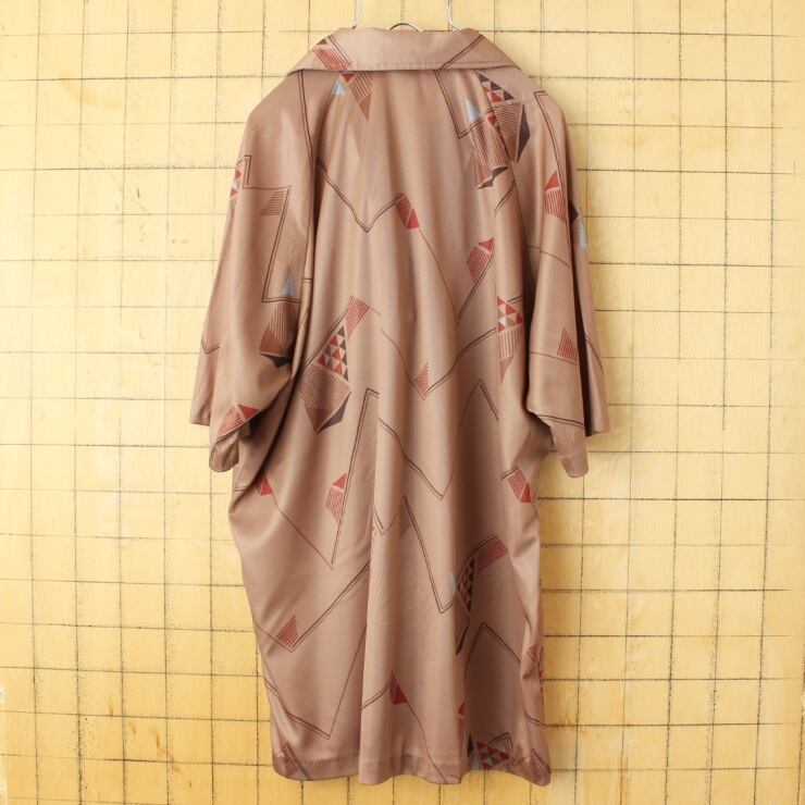70s 80s USA オープンカラー 総柄 ポロシャツ メンズXL相当 ブラウン 半袖 ポリエステル アメリカ古着 050824ss159