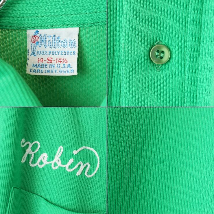 70s 80s USA製 Hilton プルオーバー ボウリング シャツ メンズS グリーン 半袖 ポリエステル アメリカ古着 050824ss179