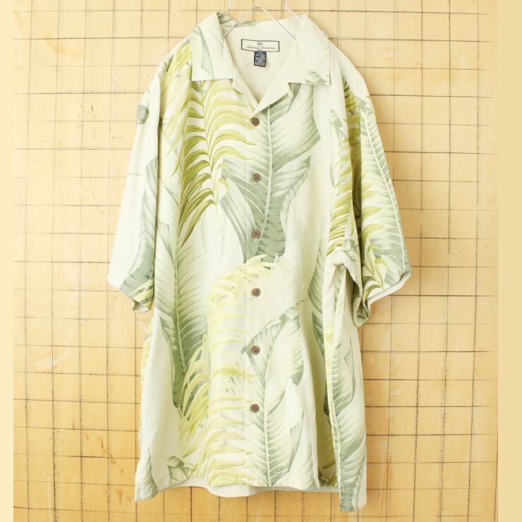 90s USA Tommy Bahama シルク アロハ シャツ メンズM 半袖 ライトグリーン ハワイアン アメリカ古着 050824ss43