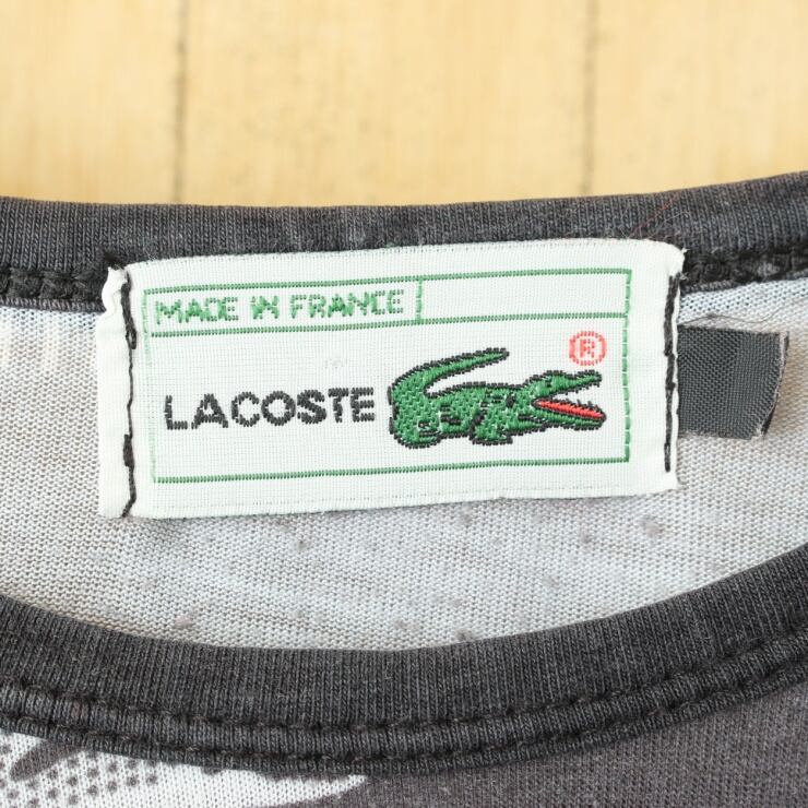 フランス製 フレンチラコステ Lacoste 半袖 クルーネック Tシャツ グレー メンズS相当 総柄 ヨーロッパ古着です。