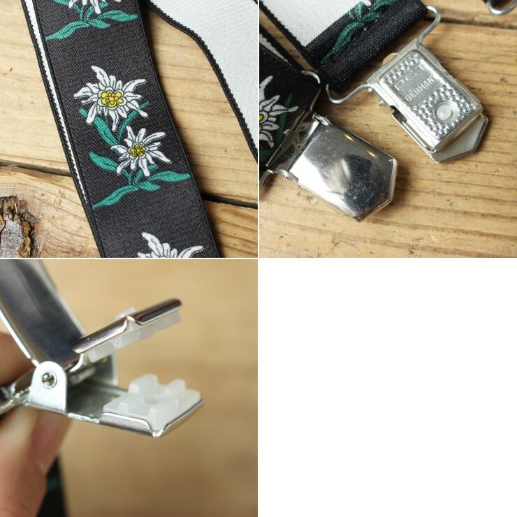 ドイツ製 PCT 花柄 クリップ式 サスペンダー ゴム ブラック 黒 総柄 EURO ヨーロッパ古着 050824ss264
