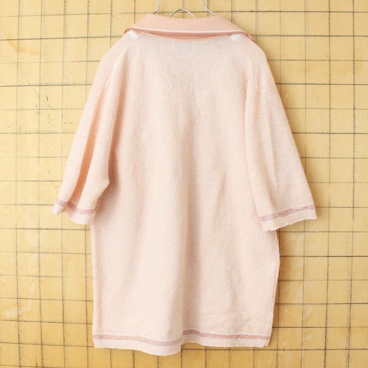 70s 80s USA製 LAHMAR パイル地 ポロシャツ メンズM オレンジピンク 半袖 アメリカ古着 050824ss207