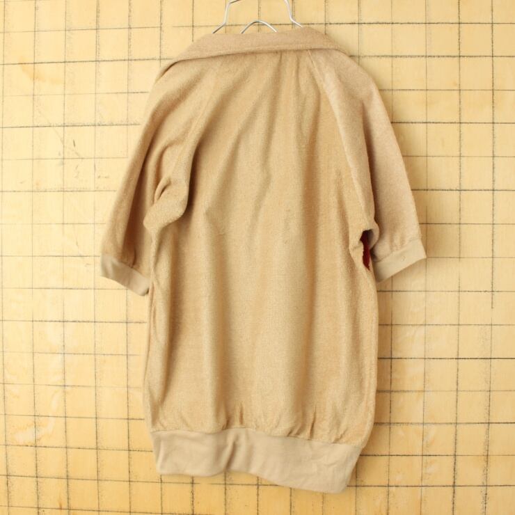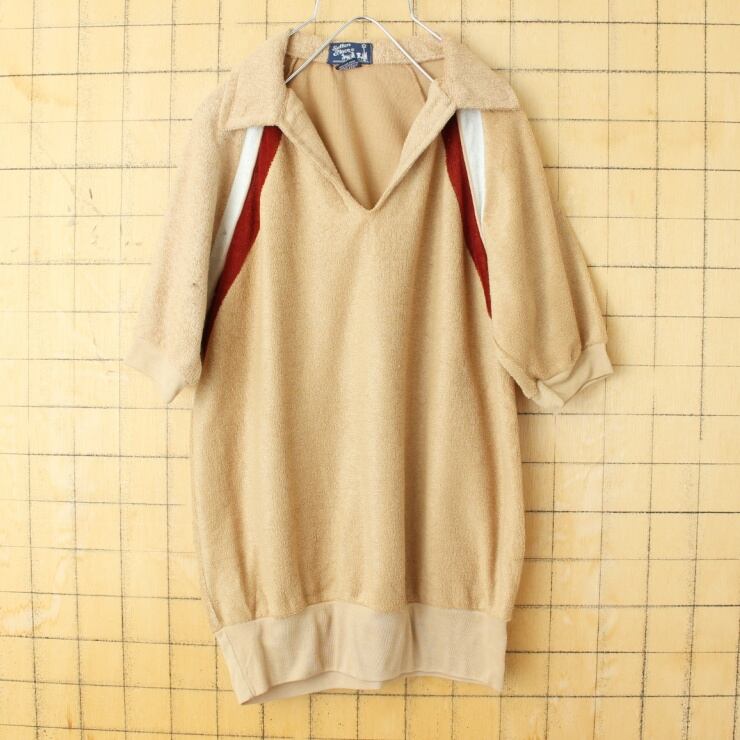 70s 80s USA Sutton Place パイル地 ポロシャツ メンズS ベージュ 半袖 アメリカ古着 050824ss209