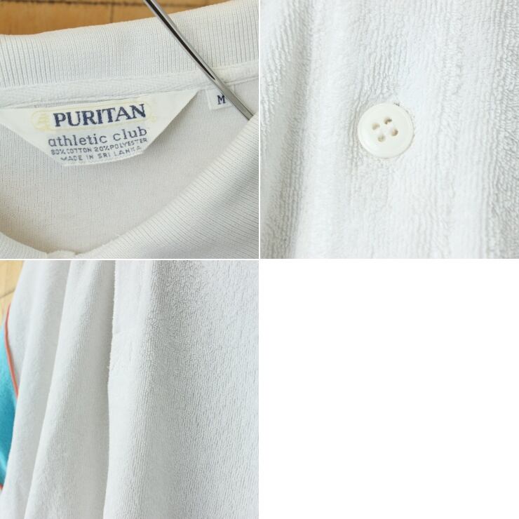 70s 80s USA PURITAN パイル地 ポロシャツ ホワイト メンズM 半袖 ビーチ オールドサーフ アメリカ古着です。