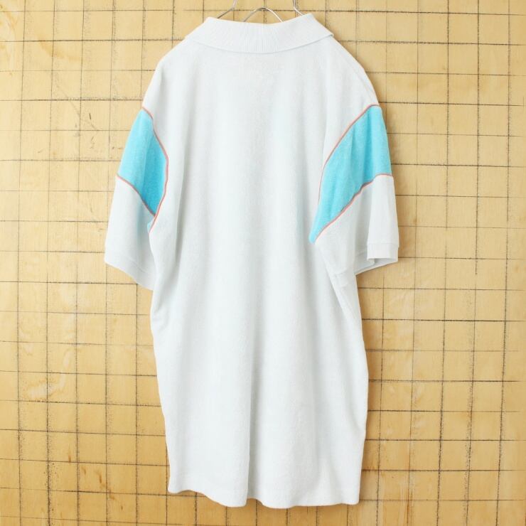 70s 80s USA PURITAN パイル地 ポロシャツ ホワイト メンズM 半袖 ビーチ オールドサーフ アメリカ古着 050824ss228
