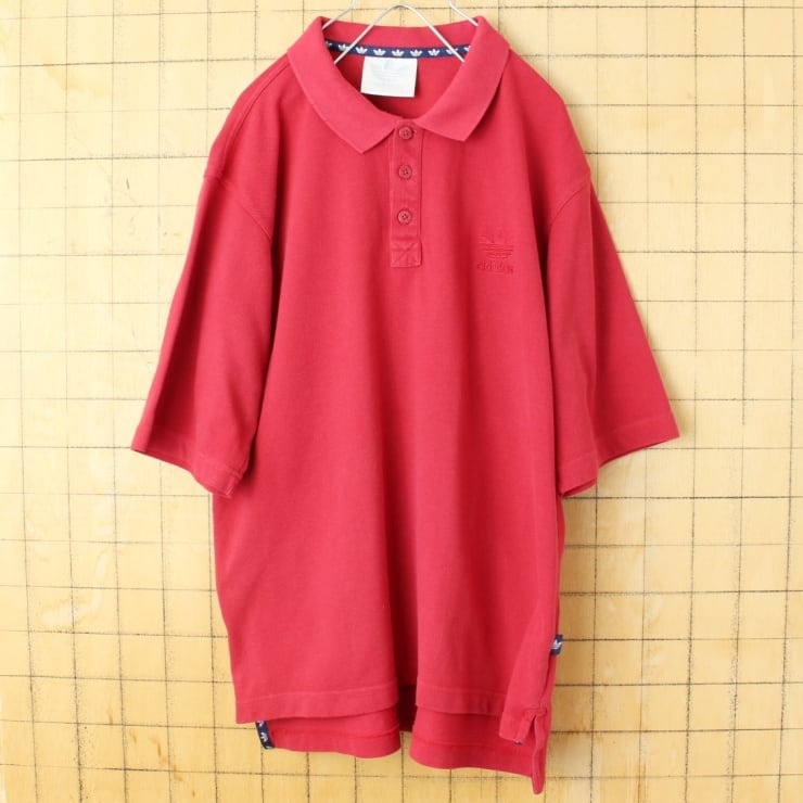 80s 90s EURO adidas アディダス ポロシャツ レッド メンズM 半袖 トレフォイルロゴ ヨーロッパ古着 071024ss34