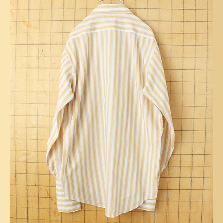 70s 80s USA Forsyth 長袖 ライトフランネル ストライプ シャツ イエロー メンズL相当 アメリカ古着 071024ss70