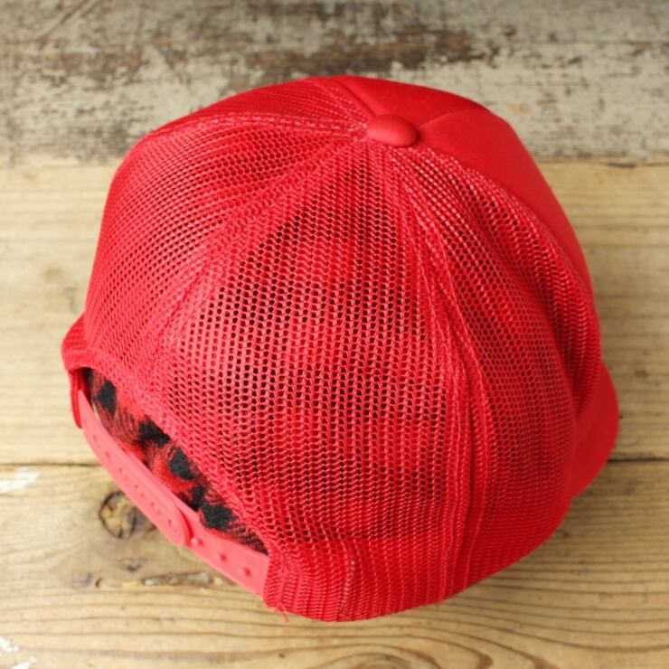 80s 90s USA apple ridge orchard メッシュ キャップ 帽子 レッド フリーサイズ アメリカ古着 091124aw115