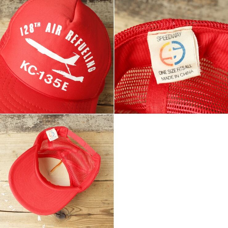 80s 90s USA 128TH AIR REFUELING KC-135E メッシュ キャップ 帽子 レッド フリーサイズ アメリカ古着 091124aw116