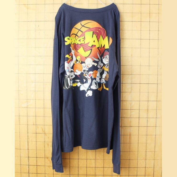 ビッグサイズ USA SPACE JAM Tune Squad バッグスバニー トゥイーティー プリント 長袖 Tシャツ ロンT ネイビー メンズ2XL アメリカ古着 091124aw26