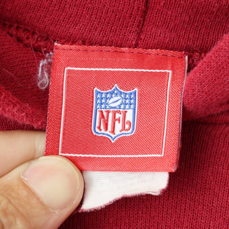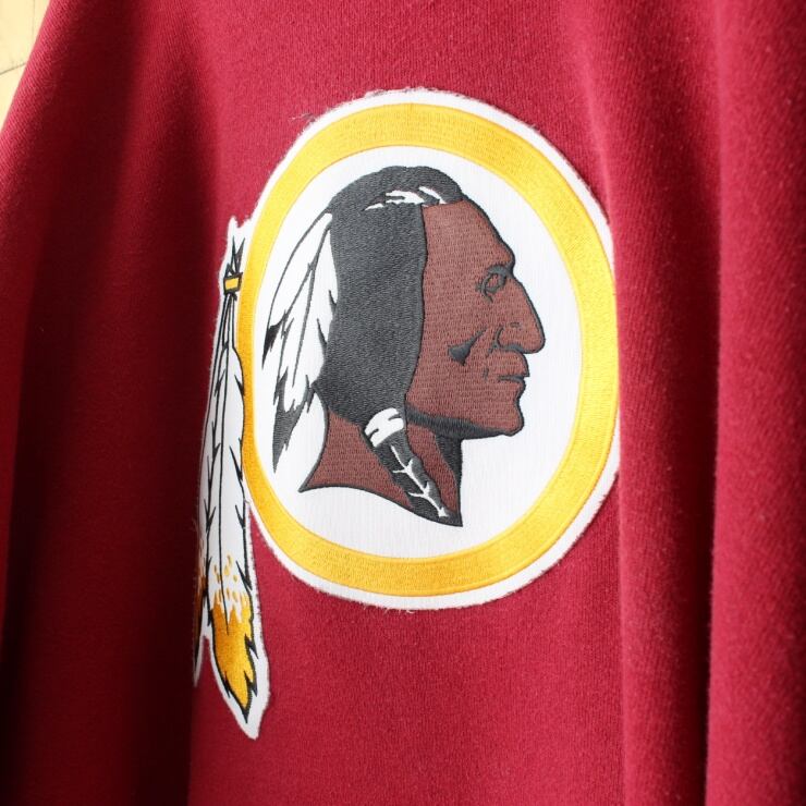 USA NFL RED SKINS レッドスキンズ スウェット パーカー レッド メンズXL フーディー インディアン アメリカ古着です。