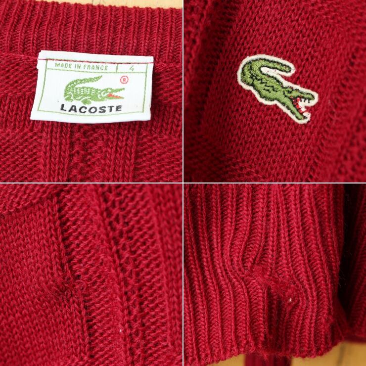 90s フランス製フレンチラコステ LACOSTE ウール ニット セーター Vネック ボルドー レッド メンズL相当 ヨーロッパ古着です。