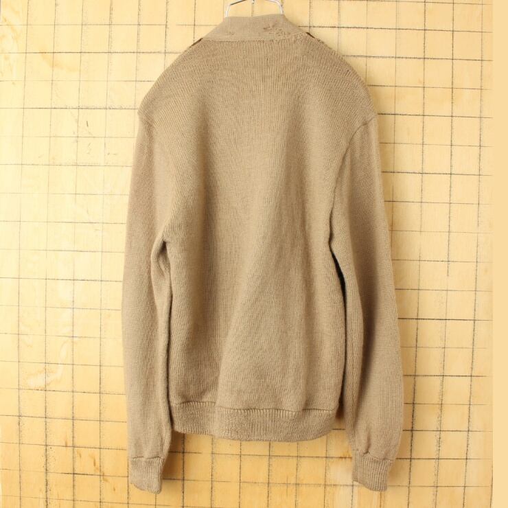 60s 70s USA Penney's TOWNCRAFT スウェードレザー 2PLYウールニット カーディガン ベージュ メンズM アメリカ古着 091124aw75