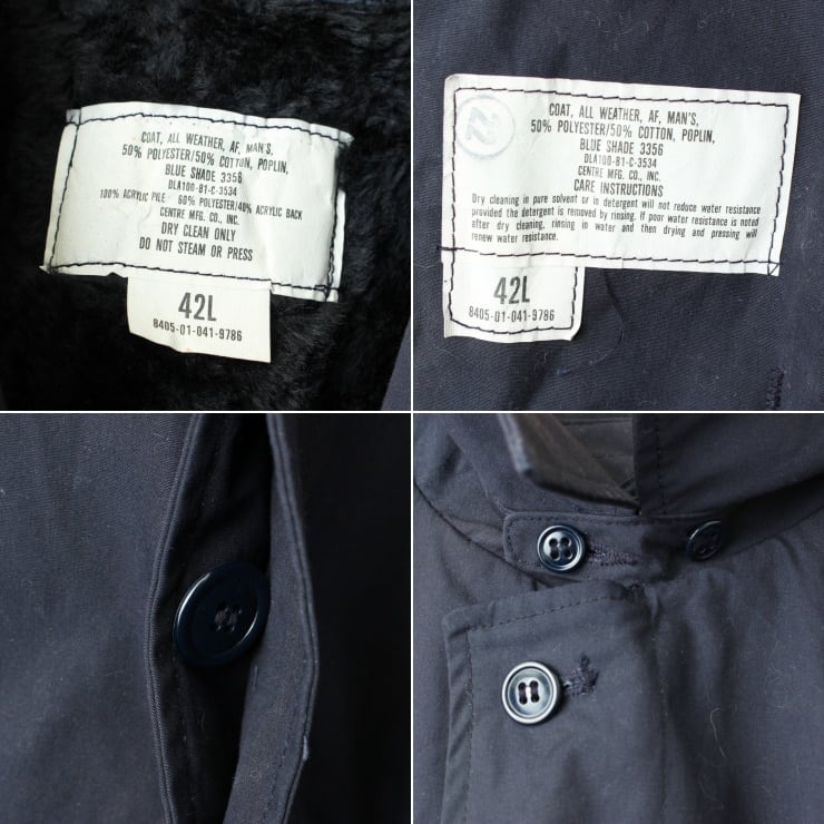 80s U.S.AIRFORCE All Weather Coat ステンカラーコート 42L ボアライナー付 ミリタリー ネイビー 米軍実物 空軍 アメリカ古着です。