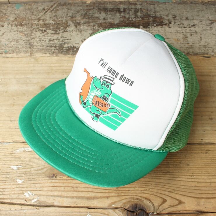 80s 90s USA Y’all come down FLORIDA メッシュ キャップ 帽子 グリーン フリーサイズ アメリカ古着 111324aw106