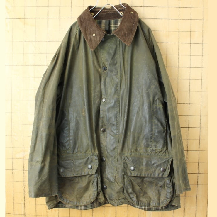 80s ENGLAND製 Barbour BEAUFORT バブアー ビューフォート 3ワラント ワックスコットン オイルドジャケット カバーオール サイズ44 カーキ グリーン アウトドア ヨーロッパ古着 111324aw81