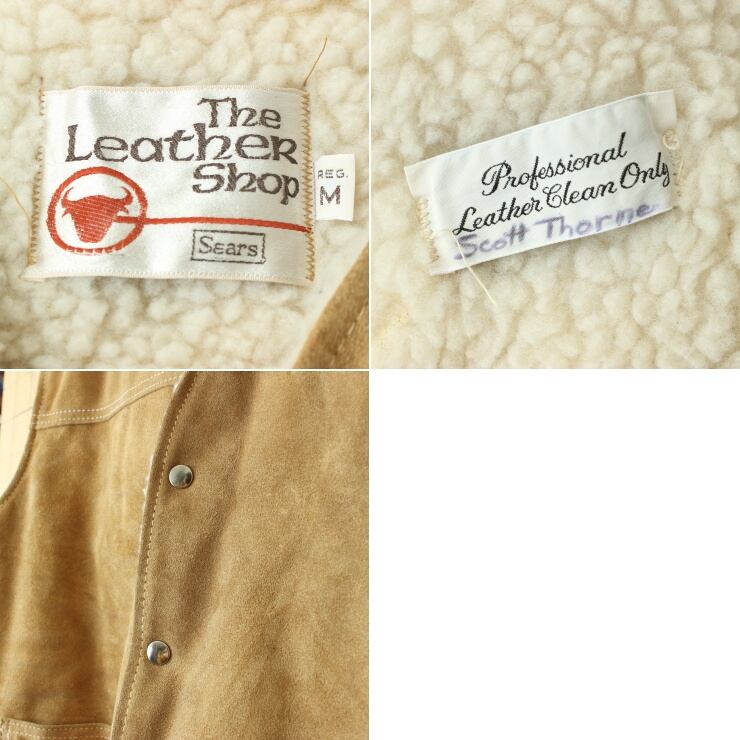 70s 80s USA Sears ボアライナー スウェードレザー ベスト メンズM ベージュ アウトドア キャンプ アメリカ古着 111324aw52
