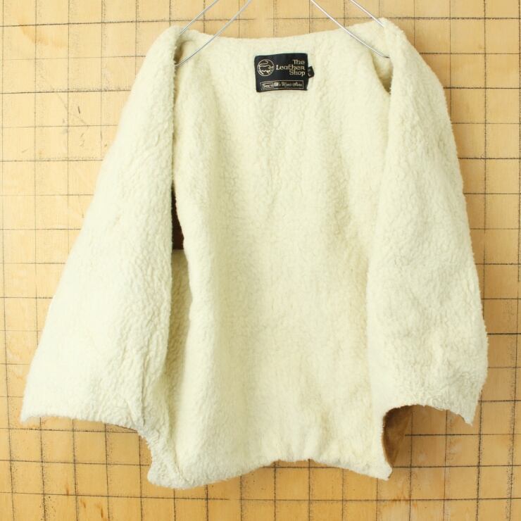 70s 80s USA Sears ボアライナー スウェードレザー ベスト メンズL ベージュ アウトドア キャンプ アメリカ古着 111324aw53