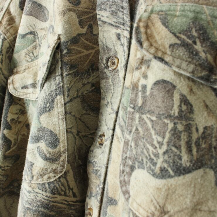 ビッグサイズ 80s 90s USA製 RED HEAD リアルカモ シャモアクロス シャツ ベージュメンズXL 長袖 迷彩 アメリカ古着です。